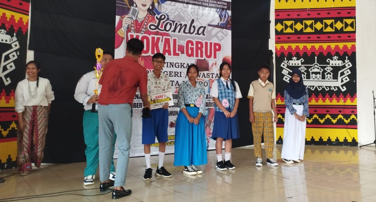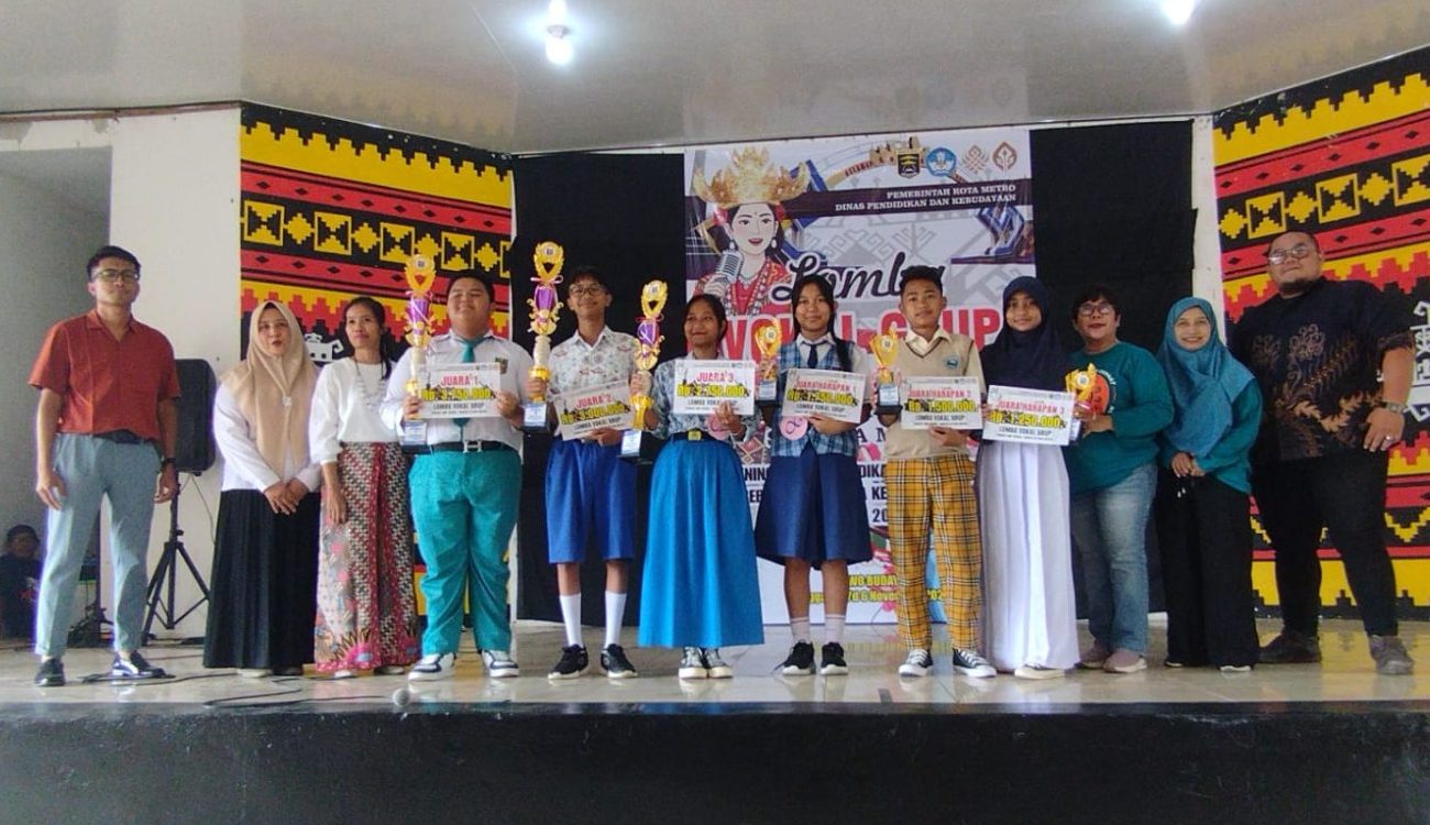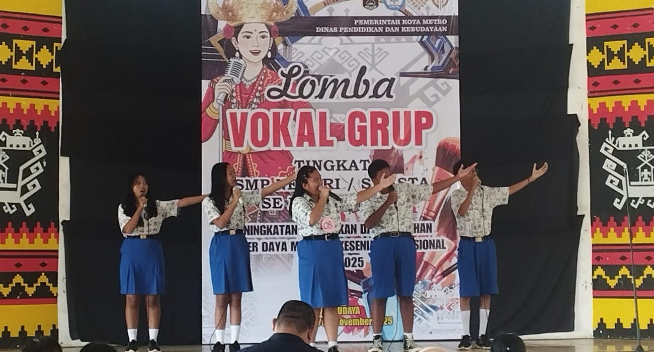 Metro, 5–6 November 2025 – Dalam rangka peningkatan pendidikan dan pelatihan sumber daya manusia di bidang kesenian tradisional, Dinas Pendidikan dan Kebudayaan Kota Metro menyelenggarakan Lomba Vocal Group dan Lomba Make Up/Tata Rias Pentas Tari tingkat SMP Negeri dan Swasta se-Kota Metro. Kegiatan berlangsung di Gedung Nuwo Budayo, Jalan Jenderal Sudirman, Kota Metro.